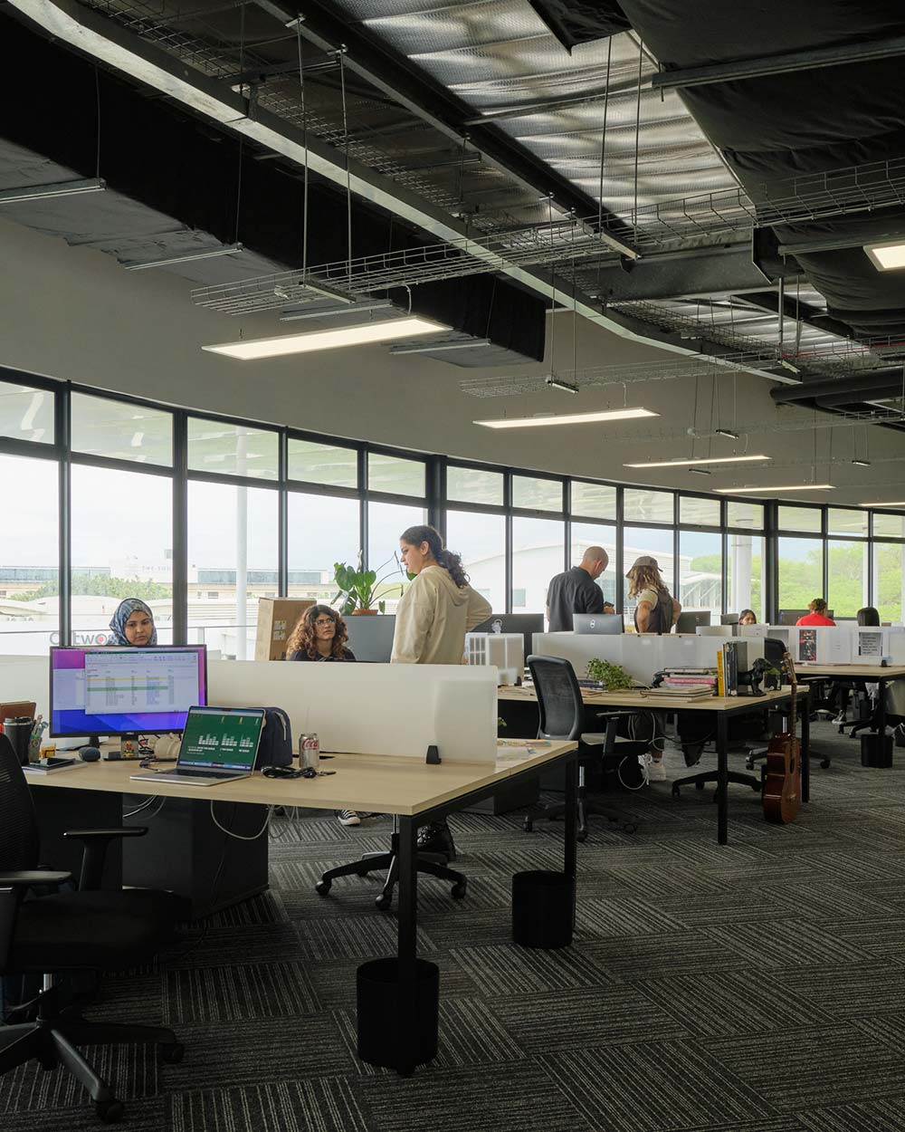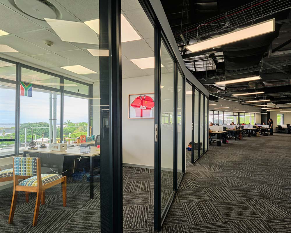 Suspended ceiling systems were professionally installed to conceal services and integrate lighting, while enhancing acoustics and refined office ambiance. -